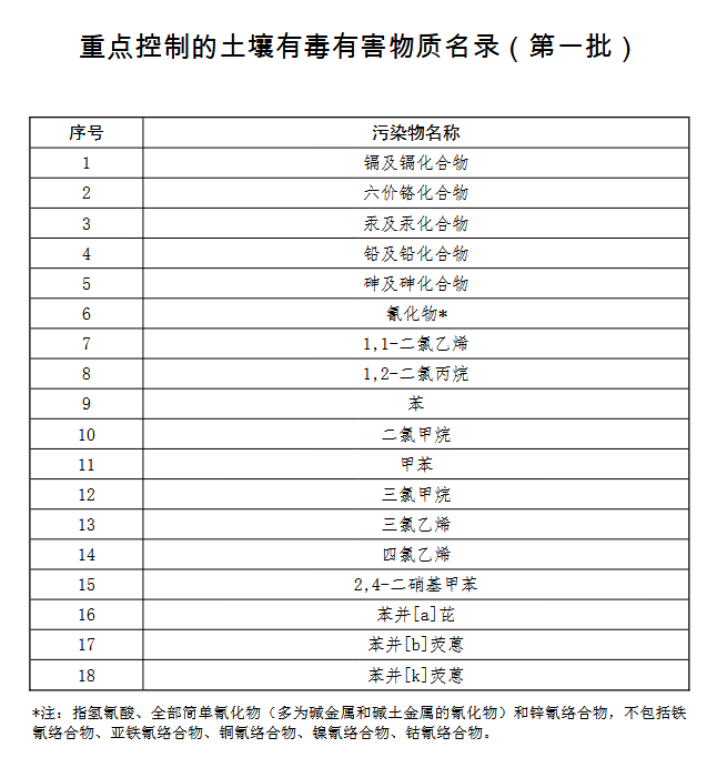 重點控制的土壤有(you)毒有(you)害物質(zhi)名錄(lu)(第一(yi)批)