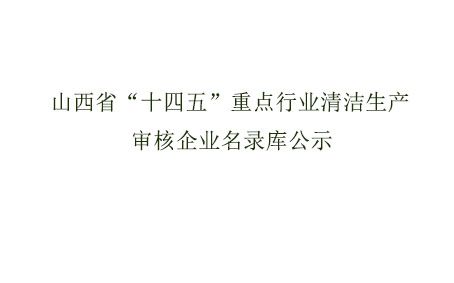 山西省“十四五”重點行業清潔生產審核企業名錄庫公示