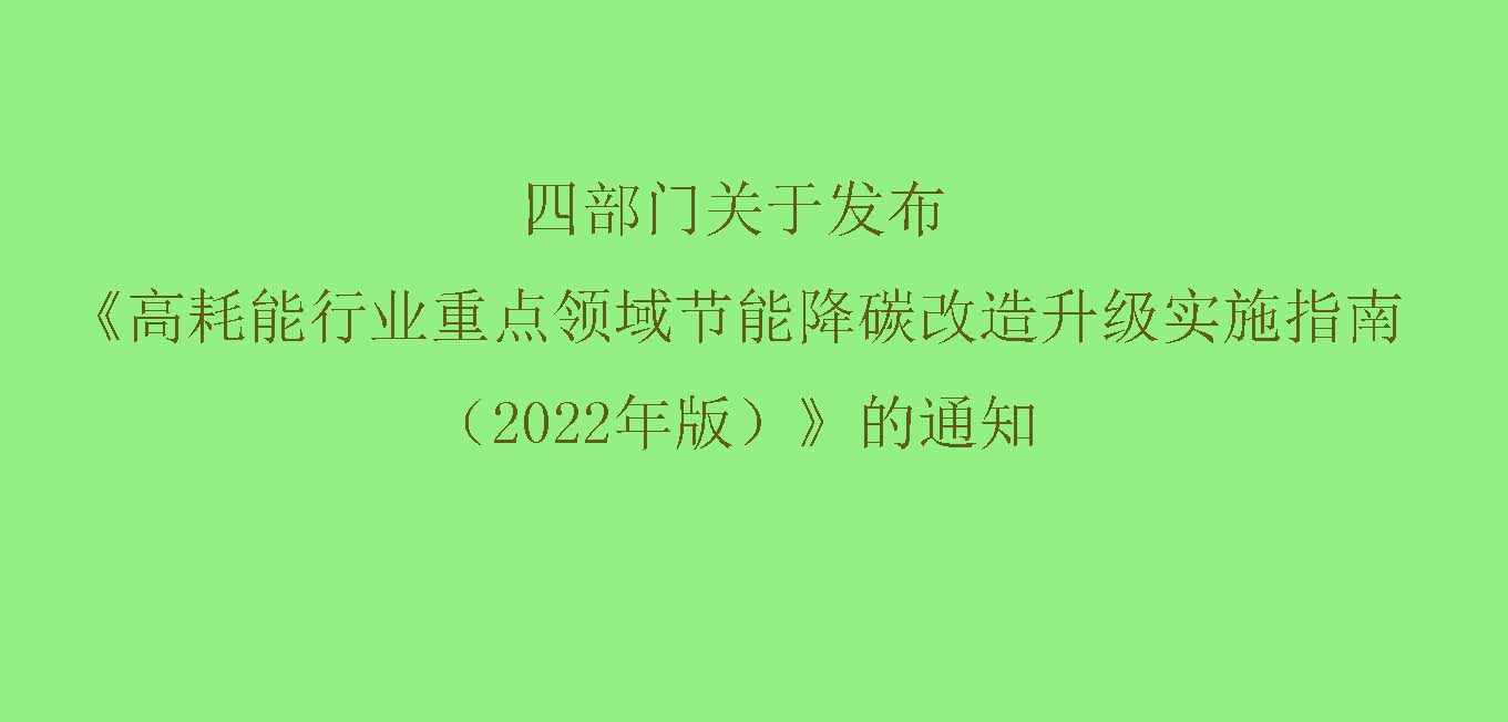 四部門關于發布《高耗能行業重點領域節能降碳改造升級實施指南(2022年版)》通知