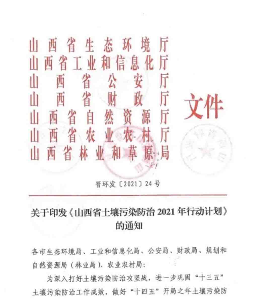 關于印發《山西省土壤污染防治2021年行動計劃》的通知