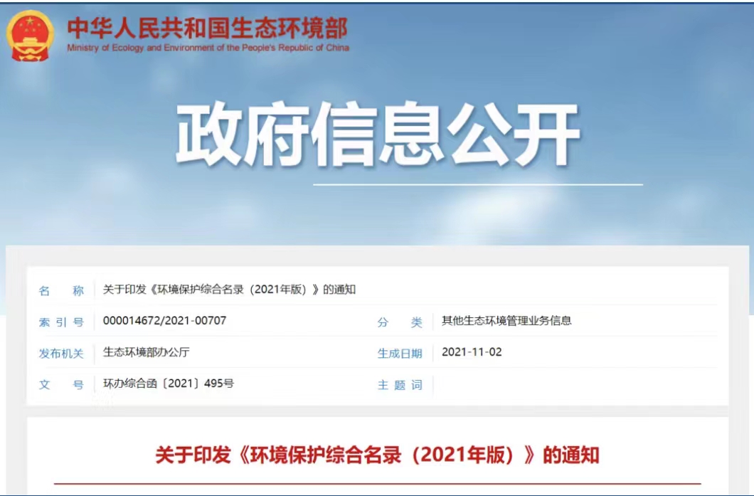 關于印發《環境保護綜合名錄(2021年版)》的通知