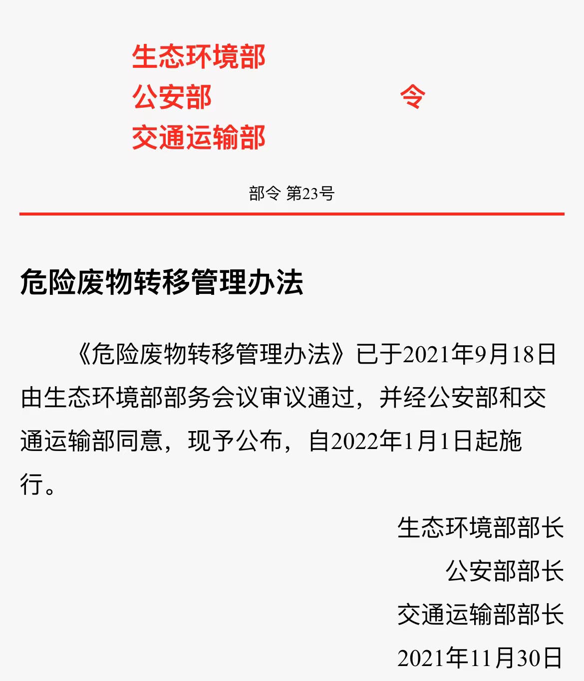 生態環境部關于發布《危險廢物排除管理清單(2021年版)》的公告