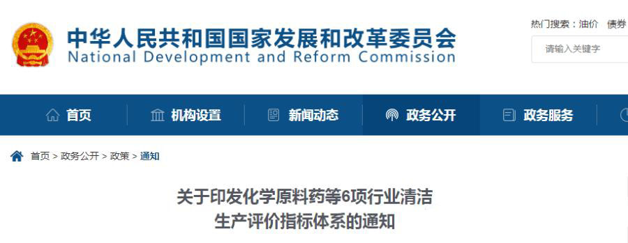 三部門聯合印發化學原料藥等6項行業清潔生產評價指標體系