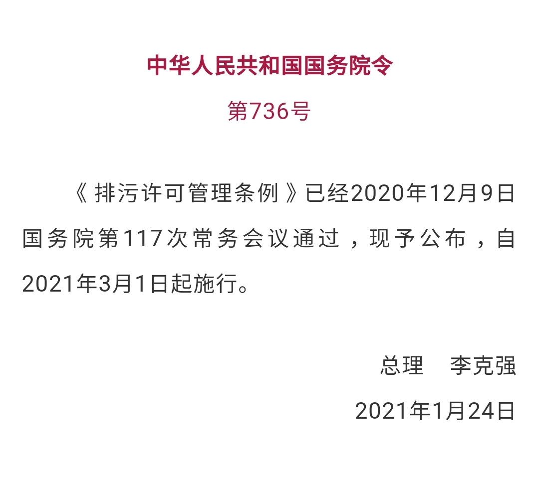 排污許可管理條例(中華人民共和國國務院令 第736號)