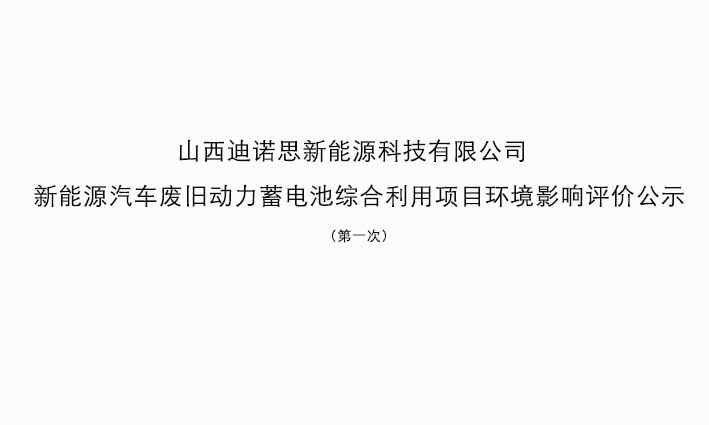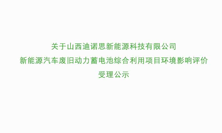 關于山西迪諾思新能源科技有限公司新能源汽車廢舊動力蓄電池綜合利用項目環境影響評價受理公示